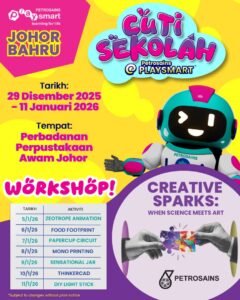 Selamat datang ke Perbadanan Perpustakaan Awam Johor. Kami mengalu-alukan anda untuk mengikuti Lawatan Maya Interaktif 360 dan merasai pengalaman berada di perpustakaan kami. Terdapat tempat-tempat menarik di perpustakaan kami seperti Kafeteria, Playfarm, Petrosains, Makers Studio dan pelbagai lagi. Mari jelajah bersama!